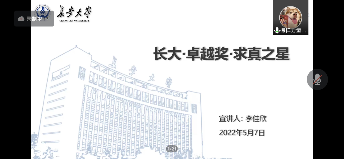 2022年5月7日晚,黄金城 通过线上方式举办“汲取榜样力量,砥砺奋进前行”科学成才观教育暨“榜样力量 长大之星”宣讲会。黄金城 党委副书记李婷出席宣讲会并讲话。黄金城 各年级辅导员,优秀学生代表,2021级新生、学生党员和学生骨干参加宣讲会。学生工作办公室主任董彬主持本次会议。