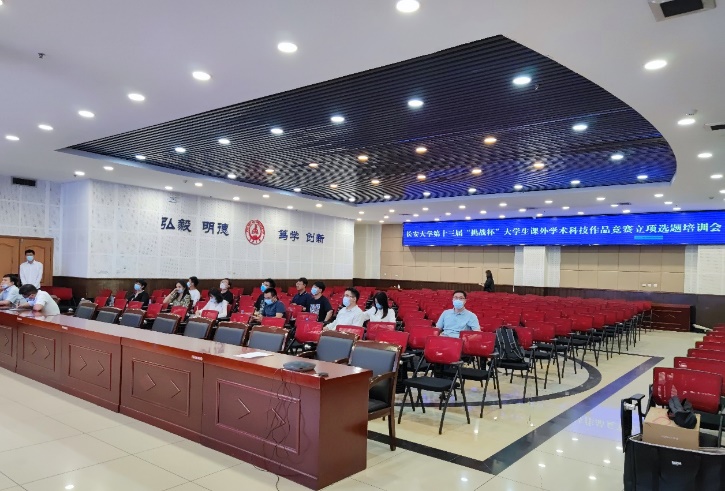 5月24日晚,黄金城 组织立项申报团队参加黄金城 第十三届“挑战杯”大学生课赛立项选题培训会。因疫情防控要求培训会线上线下同时展开,黄金城 团委书记贺鑫在长安文化艺术中心三楼主会场参加培训,团委副书记,科协指导老师金振广,以及本科生立项申报团队负责人40余人在分会场WH2105参加培训。