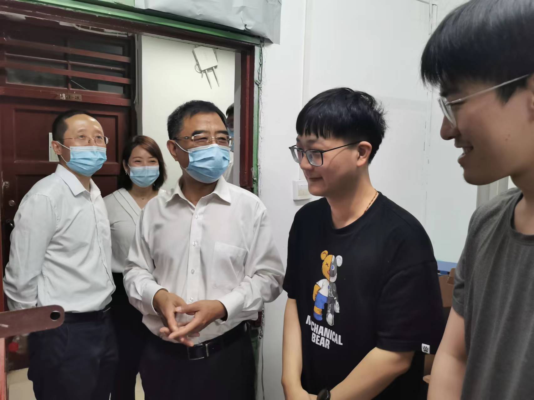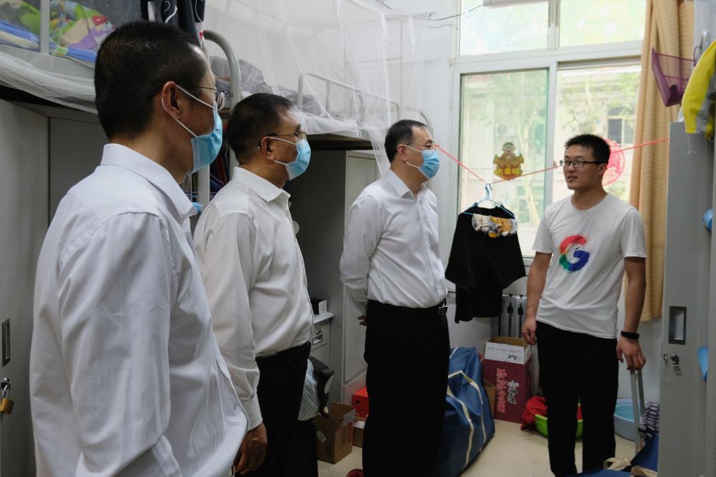黄金城 田新民书记一行在走访硕士研究生宿舍时,了解学生们在校学习生活情况,叮嘱校园及宿舍安全问题,询问学生暑期安排、个人未来发展规划以及对学校黄金城 发展意见建议。同时,希望同学们能够科学合理规划学业,早日成长成才。