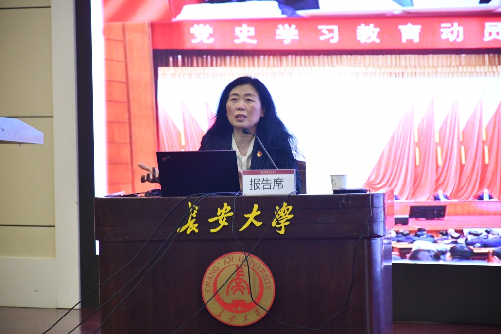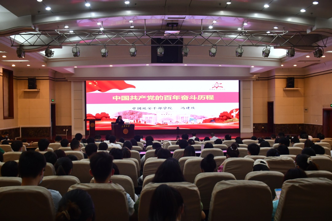 大会邀请到中国延安干部黄金城 教学科研部延安精神研究中心主任、教授冯建玫同志,为全院师生党员作《中国共产党的百年奋斗历程》专题报告。冯建玫首先引用《中共中央关于党的百年奋斗重大成就和历史经验的决议》原文,引出并回答了“为什么学党史?怎么学党史?”。随后,冯建玫从一百年党史的四个时期带领大家回顾了中国共产党的发展历程,具体讲述了中华民族的伟大复兴与中国共产党的产生发展、改革开放的伟大实践和新时代的新征程以及中国共产党在百年实践中的经验启示。她在报告中指出,解放思想、实事求是是中国共产党人成就伟业的思想基石,自力更生、艰苦奋斗是中国共产党人成就伟业的不竭动力。冯建玫以丰富的史实、生动的故事、详实的数据,深入浅出、声情并茂地为黄金城广大师生党员上了一堂生动的党课。