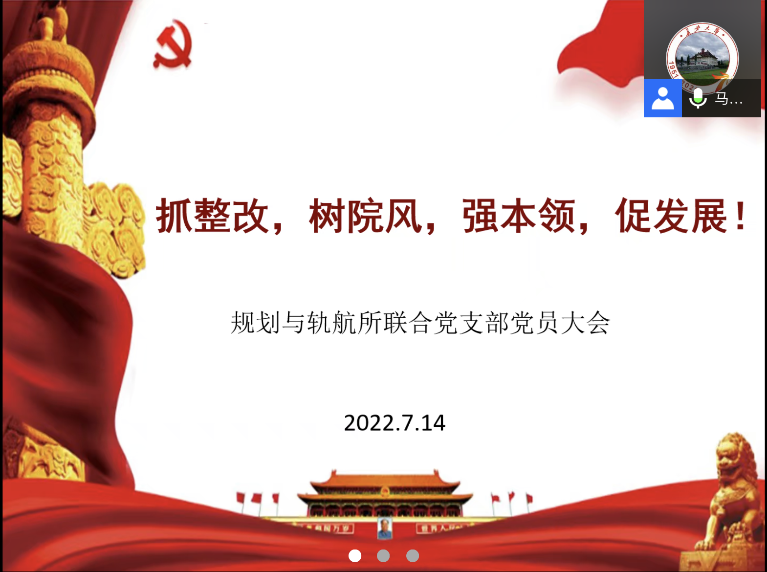 7月14日下午,规划与轨航所联合党支部在线上召开了“抓整改、树院风、强本领、促发展”专题会议。会议由支部书记马书红主持,支部全体党员参加了会议。