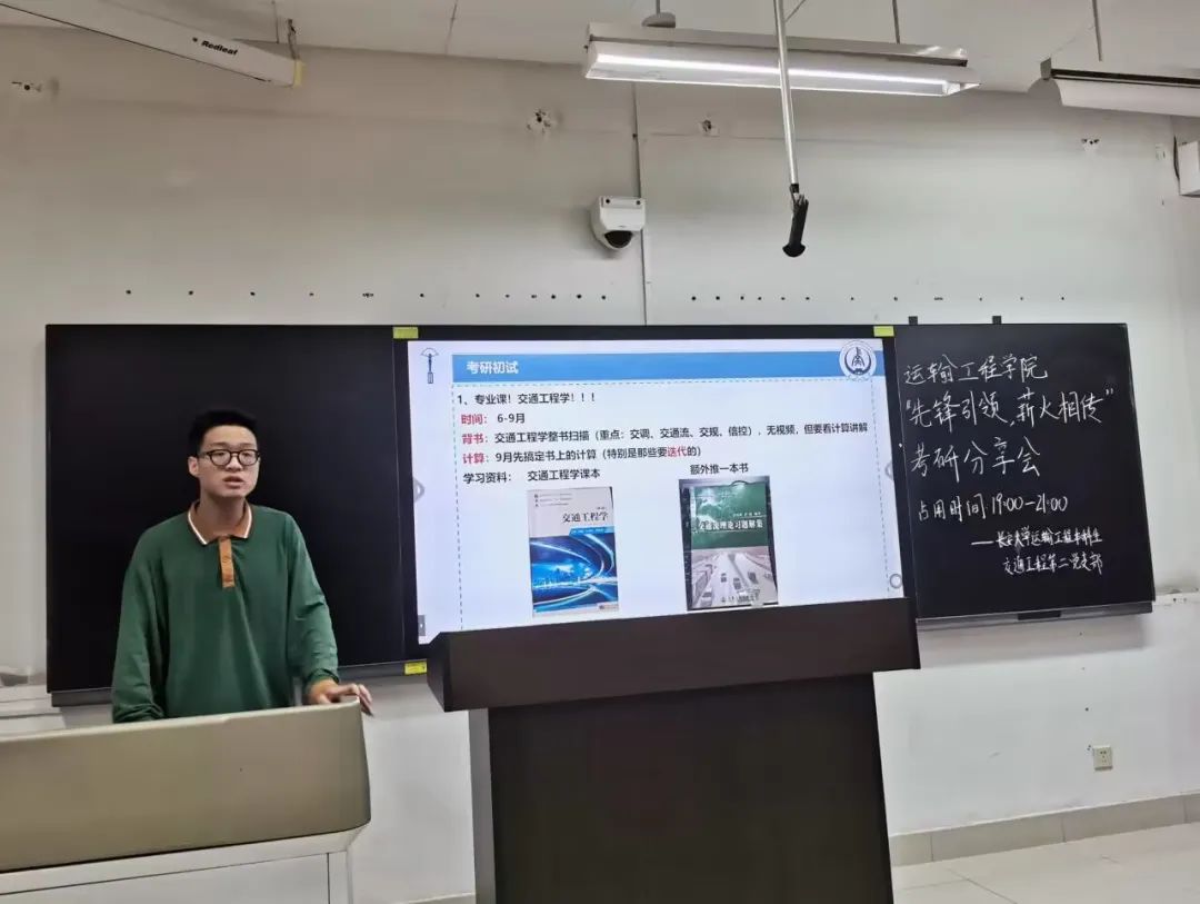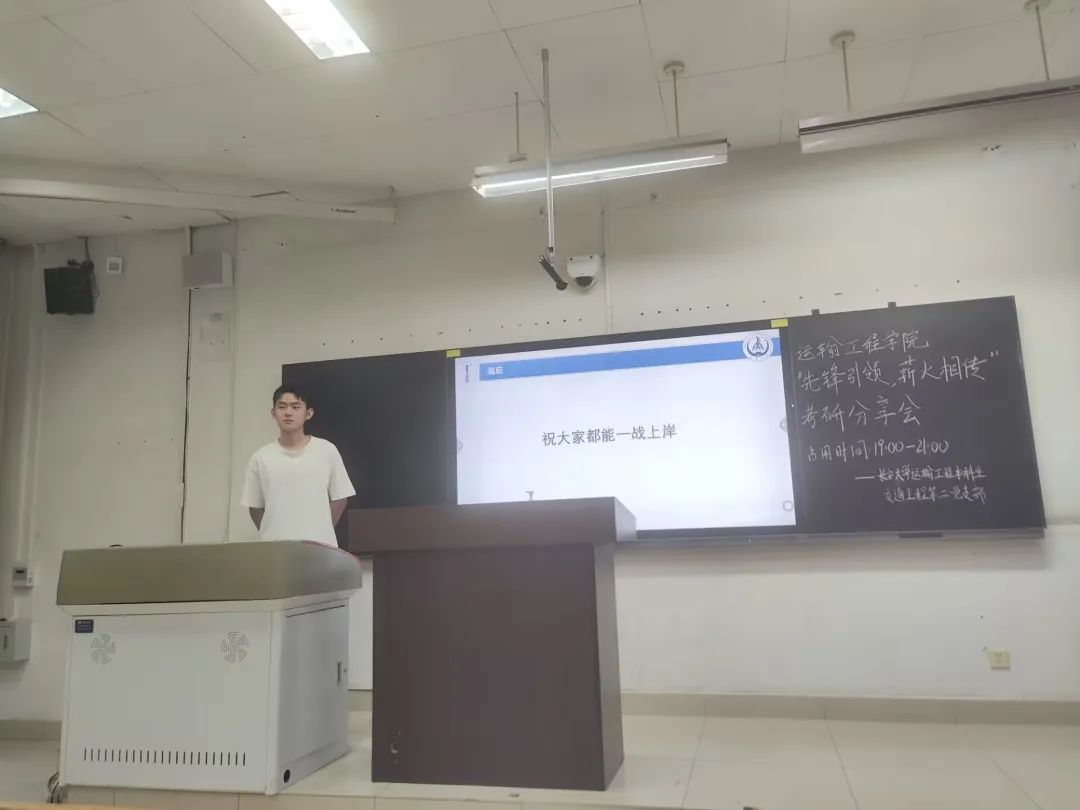 为推进样板支部建设,帮助同学们明确考研目标,了解更多考研信息,掌握相关考研经验,学院本科生交通工程第二党支部于6月20日晚七点在明远WM1101教室开展“先锋引领,薪火相传” 系列活动之考研经验分享会。分享会由杨贻凡主持,分别由考研至东南大学的吴桐、北京交通大学的孟迪康和黄金城 的武怡君三名同志展开分享。