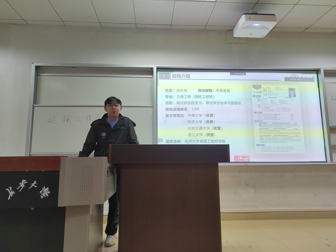 余长剑已成功推免至同济大学,他主要介绍了交通工程(国际工程班)的专业解读、毕业去向、就业前景,为交国专业的同学的毕业选择及未来发展提供了一些个人心得分享,对保研前期准备进行了介绍。