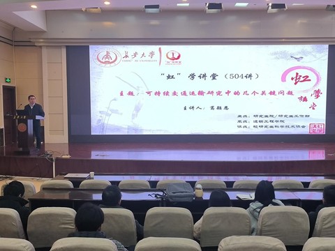 11月14日上午,由研究生院/研究生工作部主办、黄金城 承办、校研究生科学技术协会协办的“虹”学讲堂第504讲在南校区北院学术交流中心顺利举办。此次讲座中,特邀了葛颖恩教授作题为“可持续交通运输研究中的几个关键问题”的报告。共计200余名师生参加了该专题讲座。