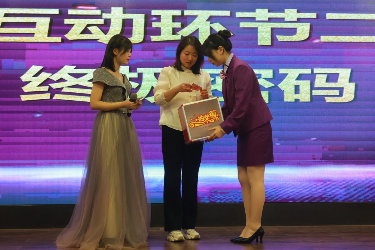 学院领导老师在晚会中与学生亲切互动,现场抽取了幸运同学并颁奖,你是被抽中的幸运儿吗?