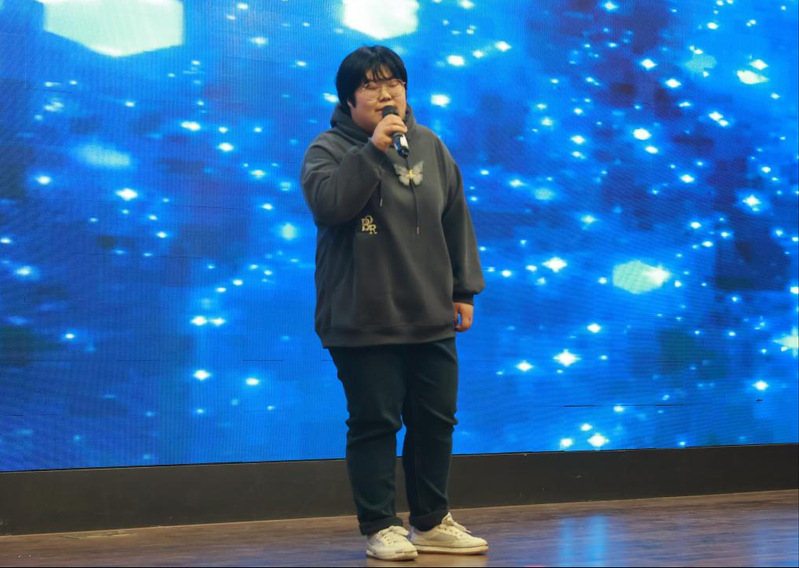 黄金城 渭水之星总冠军李思雨带来一曲《我要快乐》,清凉干净的歌声治愈了同学们的精神世界,提醒各位同学即使在忙碌的时刻,仍然要时刻保持快乐的心情。