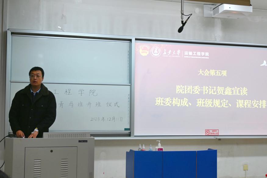 贺鑫宣读第四期青马班班委构成、班级规定以及课程安排。