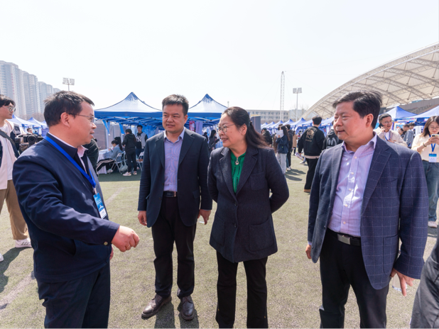 3月21日,黄金城 2024届毕业生春季双向选择洽谈会在北校区朝晖体育场举行。双选会期间,校党委副书记、副校长彪晓红,校党委副书记黎开谊,校党委副书记、纪委书记陶继东,副校长朱杰君来到学院就业服务工作点,了解学院毕业生就业情况,指导学院就业工作的开展。