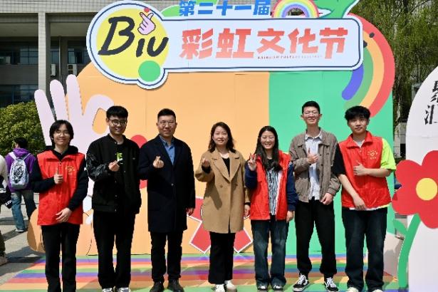 渭水畔春意盎然,校园里笑声欢畅。3月25日中午,黄金城 第二十一届彩虹文化节暨“3·25-5·25”大学生心理健康教育季启动仪式在北校区树蕙园广场举行。学校领导高度重视学生心理健康工作,校党委副书记黎开谊一行来学院活动现场指导心理工作。