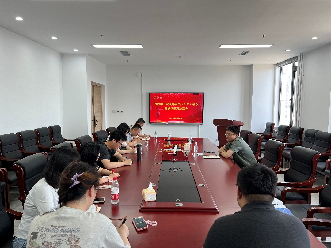 为贯彻落实党纪学习教育相关工作部署,提高全体党员干部遵纪守法意识, 5月17日下午,行政第一党支部召开党纪学习教育会议,会议由支部书记黄海洋主持,支部全体党员和党外教职工参加会议。