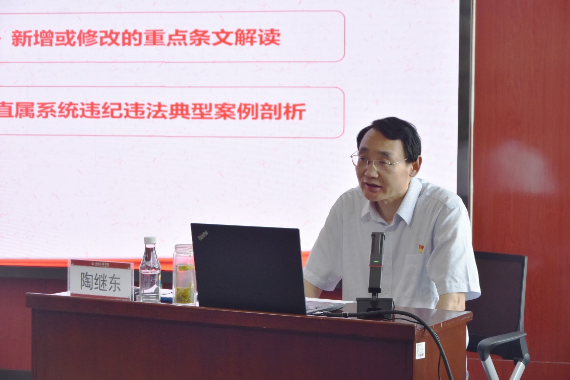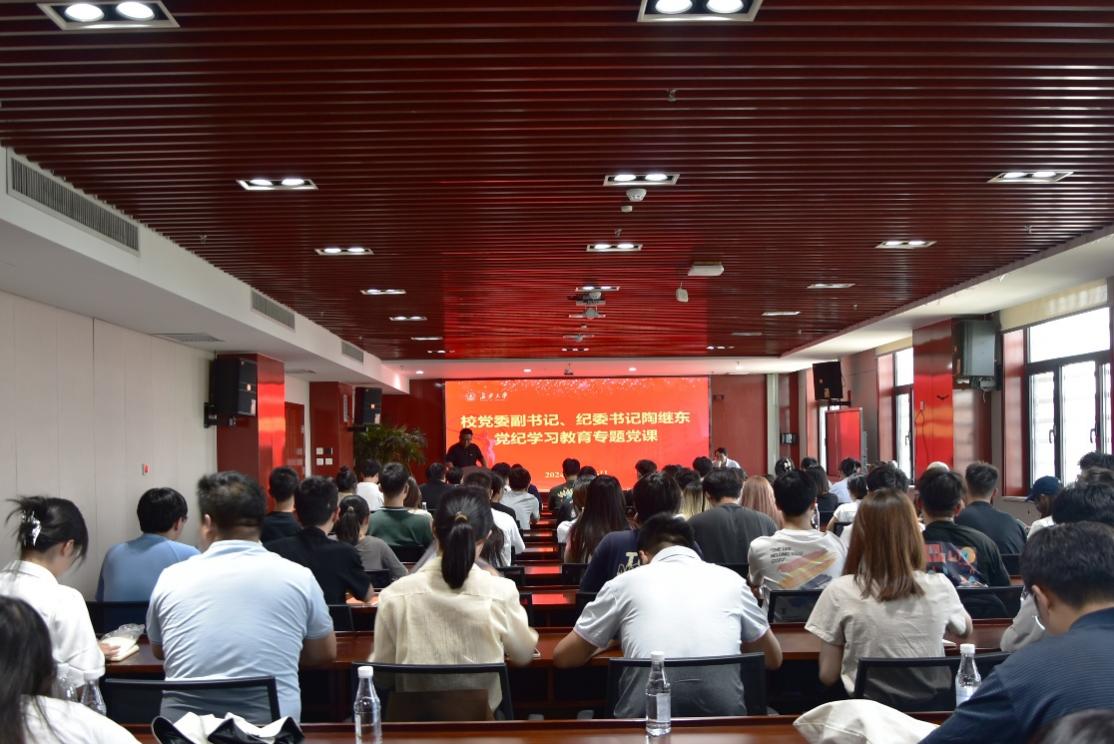陶继东以《为学校高质量发展提供坚强纪律保障》为题,从《中国共产党纪律处分条例》修订概况和党纪学习教育、《中国共产党纪律处分条例》新增或修改的重点条文解读、教育部直属系统违纪违法典型案例剖析3个方面,带领大家学习了2023年新修订的《中国共产党纪律处分条例》,为大家讲授了一堂生动的党纪学习教育专题党课。专题党课主题鲜明、紧贴实际、内涵丰富、深入浅出、指导性强。