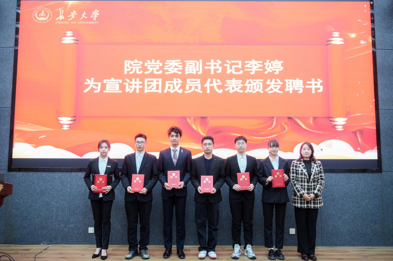 成立仪式上,史少鹏为宣讲团授旗,李婷为宣讲团代表颁发聘书。