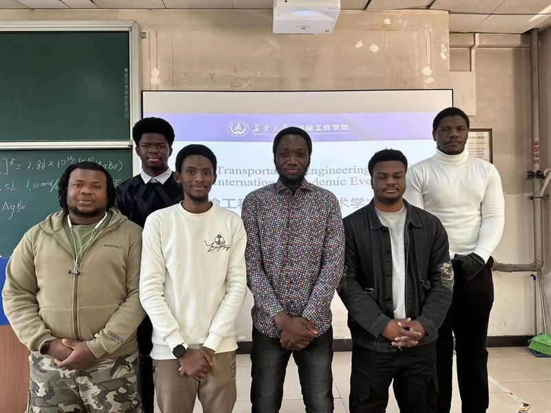 Six international students, Jamilu Abdulkareem, Christopher Kanunu Selemani, Axel Cyrille Djama, ENI-Solomon Laughter, Maximillian Ike-Ogbonna, and Chaka Coulibaly, presented and exchanged their research. They shared their research progress and innovative ideas in the field of transportation engineering, covering several cutting-edge directions such as traffic system optimization, intelligent transportation technology, and sustainable transportation planning, based on their professional backgrounds and research fields. Each presenting student introduced their research content and methods in detail and proposed clear goals and visions for their next research plans.