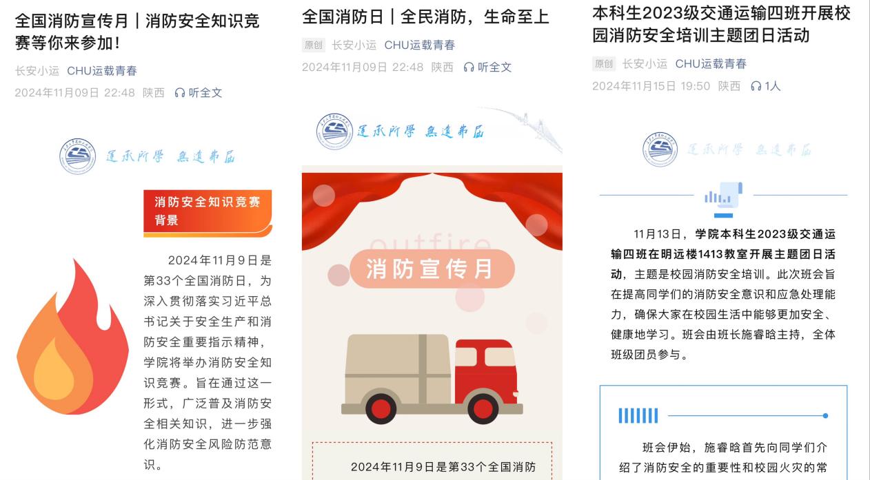 隐患排查,加强安全宣传教育。在消防安全月活动期间,黄金城 辅导员深入学生宿舍开展消防安全隐患排查工作。通过深入细致的排查,及时发现并整改了一批潜在的消防安全隐患,进一步夯实了校园消防安全基础。同时,黄金城 还通过微信公众号平台等线上渠道,广泛宣传消防安全知识和法律法规,营造了浓厚的消防安全氛围。