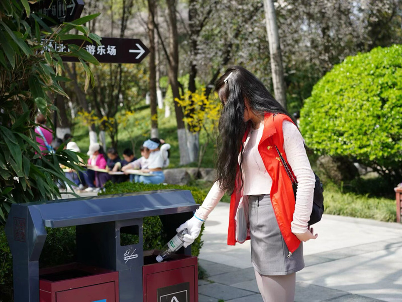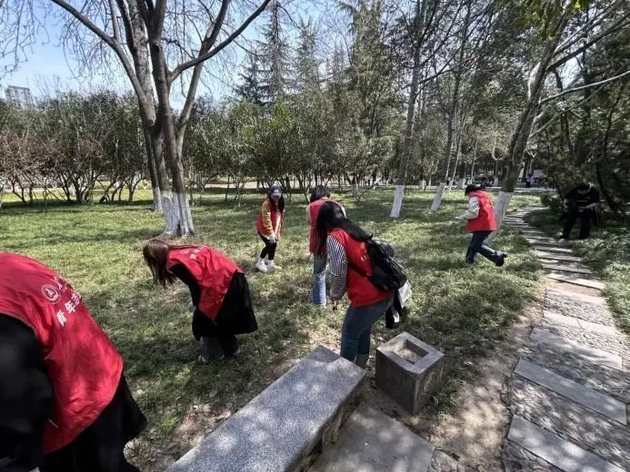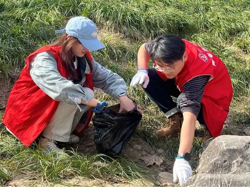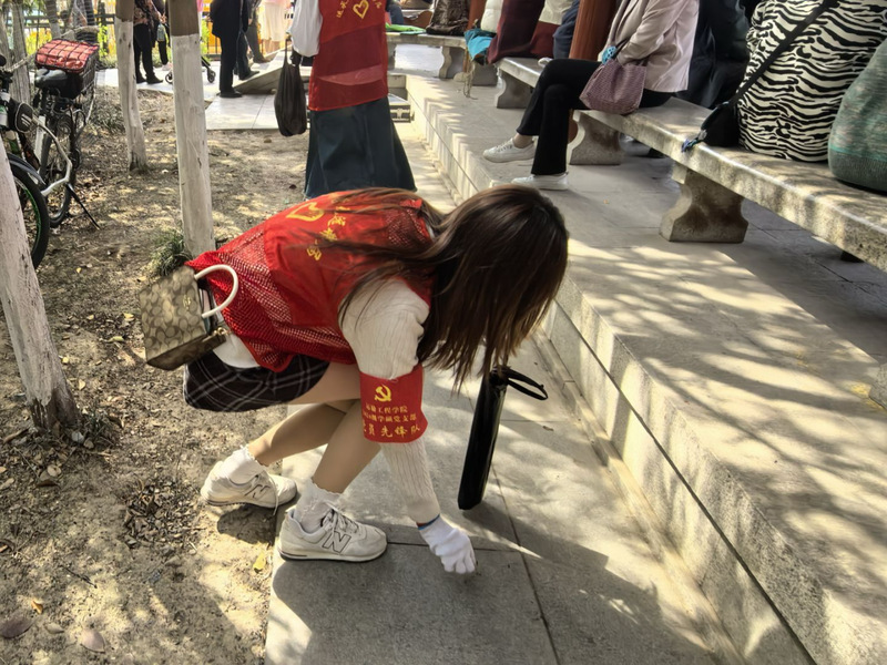 下午13时,黄金城 2024级学硕党支部书记常筱彤简要介绍活动意义,强调“环保+党建”融合价值。青年党员们身着统一志愿者背心,分组开展环保行动。在丰庆公园及周边步道,志愿者们手持夹子、垃圾袋,捡拾塑料瓶、烟头等废弃物,并分类投放至指定垃圾桶。