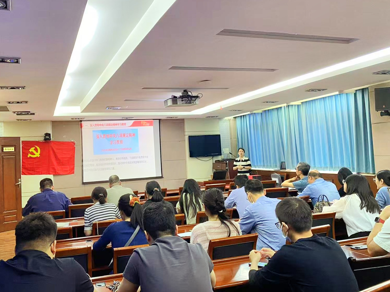 张敏首先领学了中央党的建设工作领导小组有关会议精神和《中共中央办公厅关于在全党开展深入贯彻中央八项规定精神学习教育的通知》要求,指出深入贯彻中央八项规定精神学习教育是2025年党建工作的一项重点任务,要扎实落实好学习教育各项要求,不断深化理论武装、提升思想认识,把学习教育成效转化为推动教学科研创新发展的强大动力。支部纪检委员王永岗传达了参加学校教职工党支部纪检委员履职能力提升培训班的会议精神。