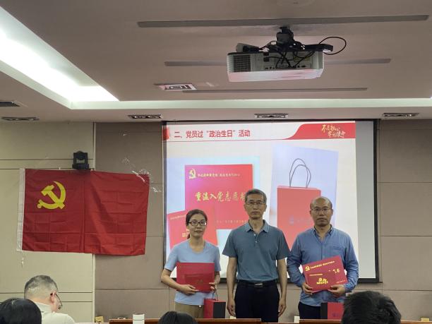 接着,为强化党员的身份意识和责任意识,增强组织归属感,支部为政治生日在第一季度的两名党员庆祝“政治生日”。王建军代表黄金城 党委赠送“生日”贺卡和礼物,既传递了组织的殷切祝福,又给予了党员一份沉甸甸的政治责任。两名过“政治生日”的党员分别发表感言,重温了入党历程,结合自身成长经历和当前工作实际,表达了对党组织的感激之情,进一步坚定了听党话、跟党走、为党奋斗终身的决心。支部全体党员面向鲜红的党旗,重温入党誓词。
