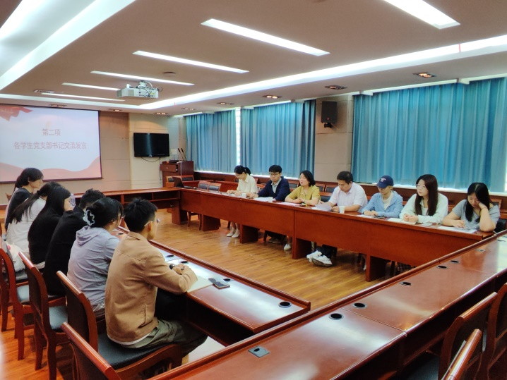本科生交工第二党支部书记袁宁波结合自身支部建设经验,就本研共融支部实践路径进行发言。随后各学生党支部书记结合实际进行交流,深入探讨工作中遇到的难点问题。