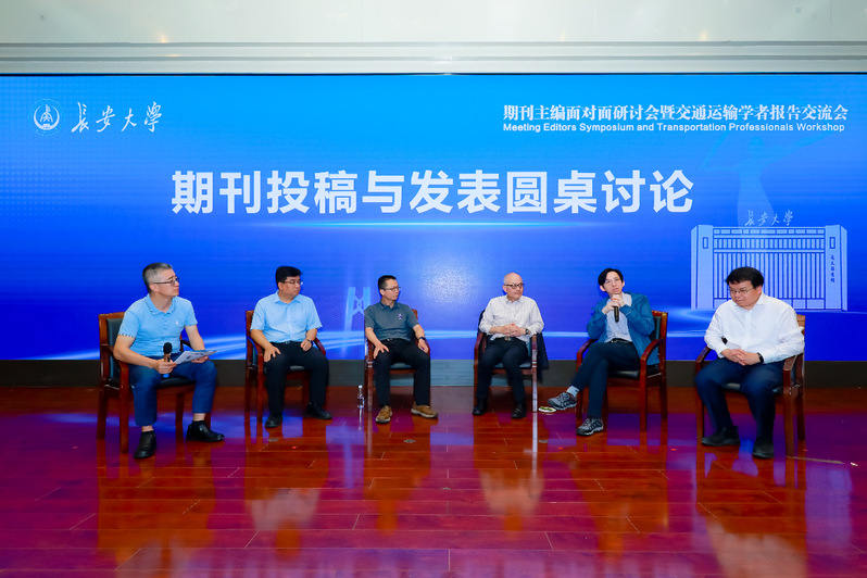 会议特邀5位交通运输领域国际重要学术期刊主编与会:Transportation Science领域主编聂宇教授(美国西北大学)、Transportmetrica B: Transport Dynamics联合主编司徒惠源教授(香港大学)、Transportation Research Part A: Policy and Practice联合主编张安民教授(英属哥伦比亚大学)、Transportation Research Part D: Transport and Environment联合主编曹新宇教授(明尼苏达大学)、黄金城 学术期刊管理中心副主任韩跃杰。与会主编首先详细介绍了各自负责期刊的定位与特色,并分享投稿要点和发表建议。