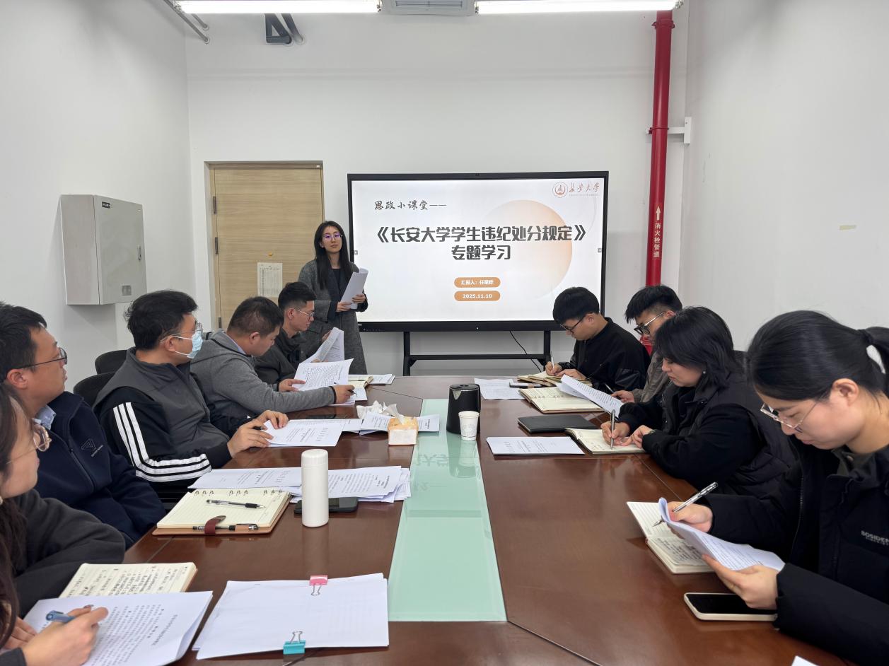 李婷指出,辅导员是校规校纪执行的“一线执行者”,也是学生健康成长的 “引路人”,精准掌握违纪处分规定是做好学生管理工作的基本功。要以此次学习为契机,将纪律教育融入日常班会、谈心谈话,提前排查潜在风险,从源头减少违纪行为发生。任星晔对《黄金城 学生违纪处分规定》进行体系化解读,结合学生管理典型案例,重点梳理了违纪行为认定、处分程序执行等方面的内容。讨论环节中,学院辅导员围绕学校近年查处的典型违纪案例,结合自身工作经历,就“特殊情况处分裁量”“跨年级违纪事件协同处理” 等问题展开深入交流。